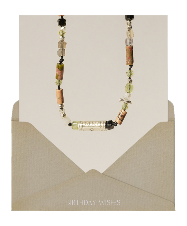8월의 탄생석, 페리도트와 용기의 재스퍼를 엮었습니다.