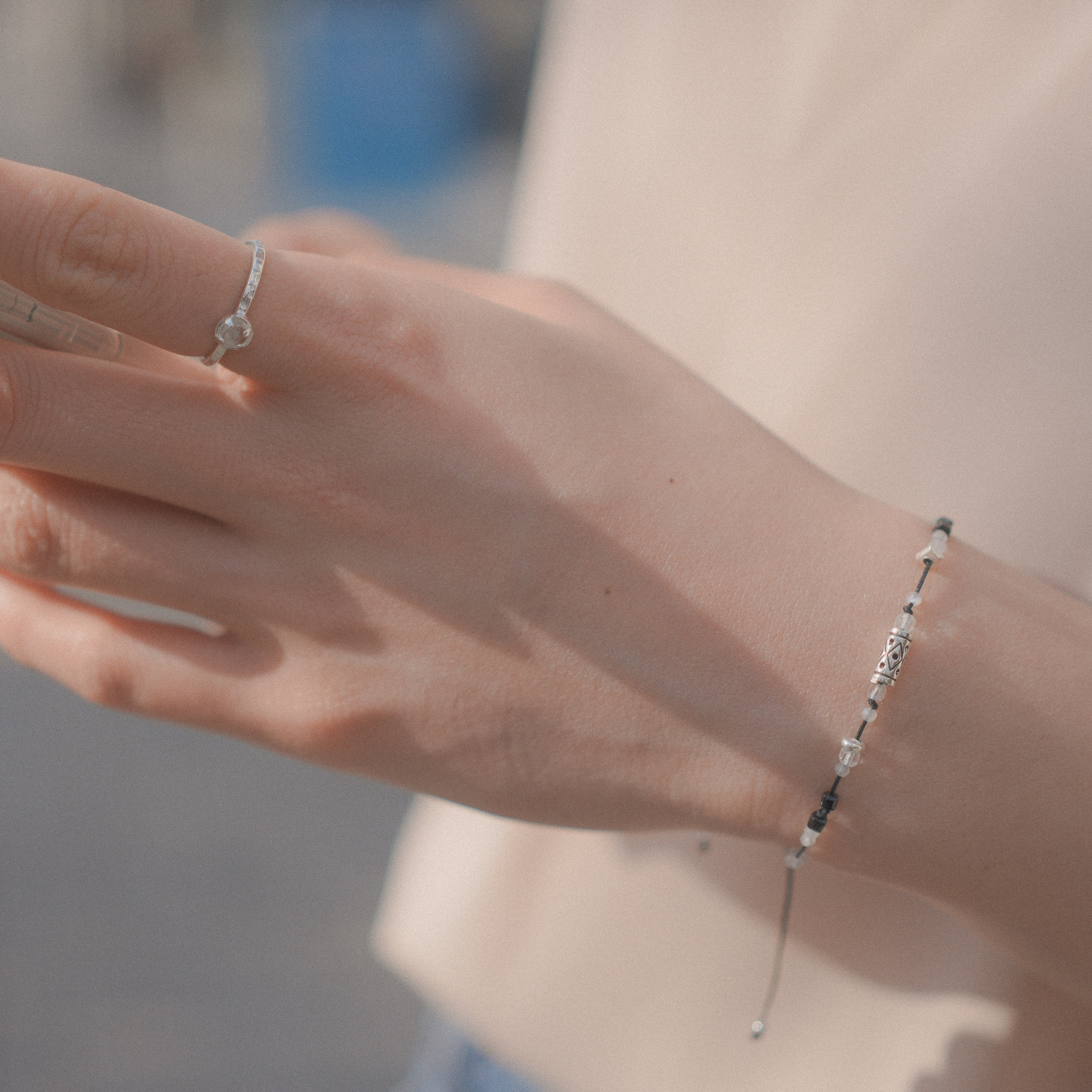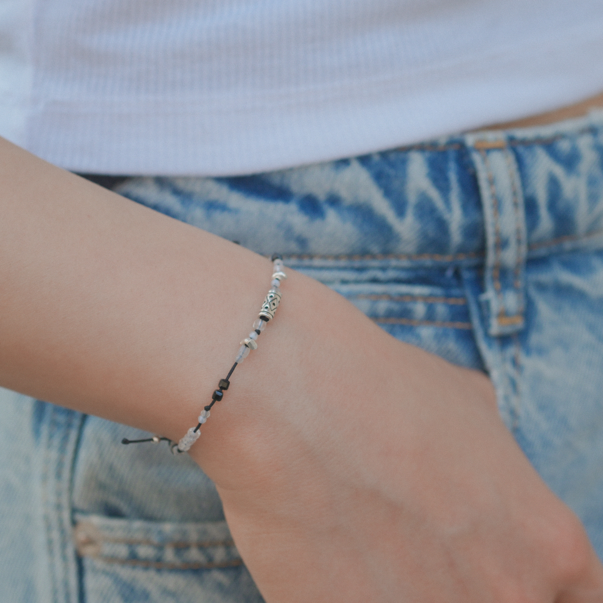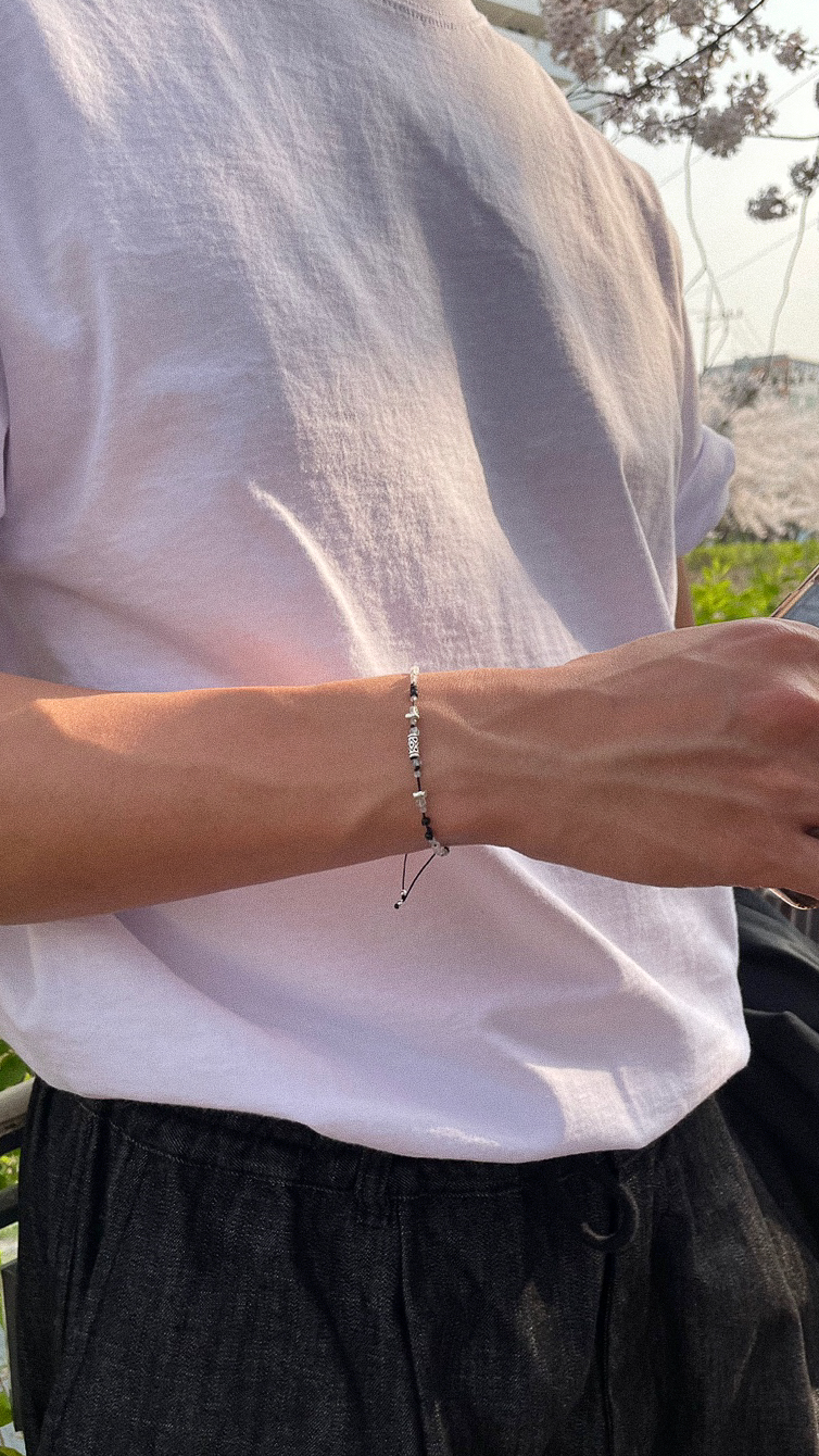꿈 없는 밤을 담은 유니섹스 실팔찌입니다.