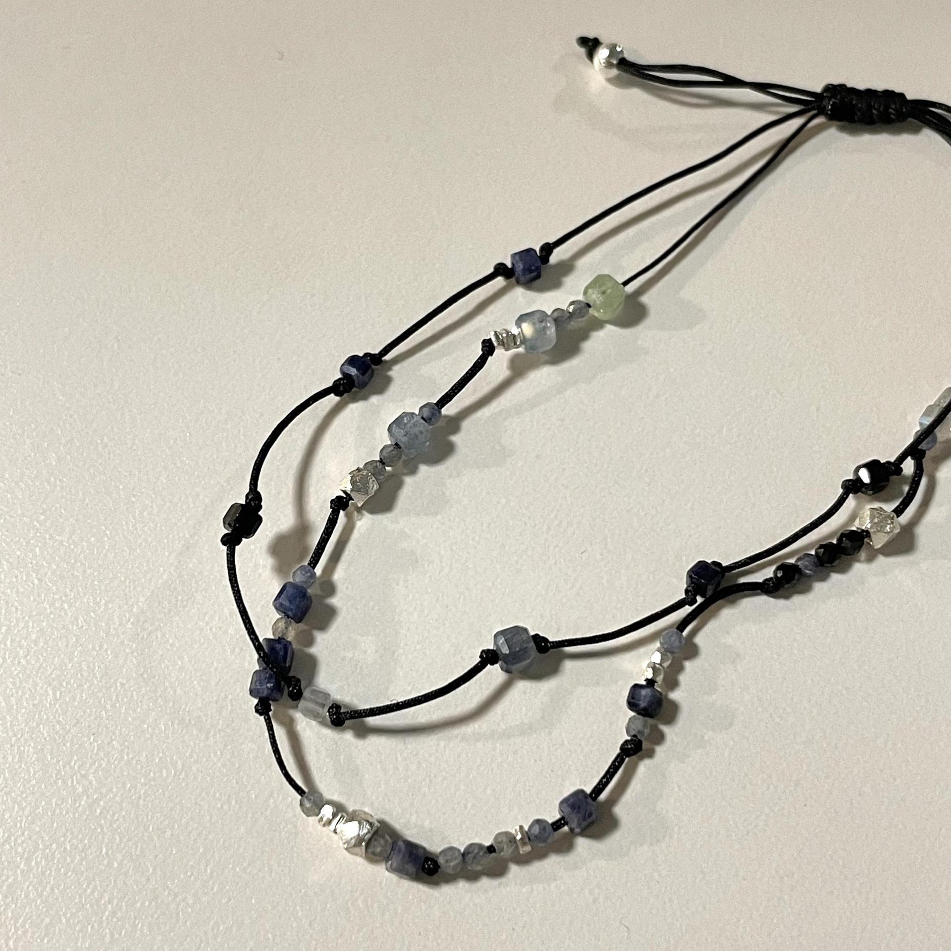 래브라도라이트와 스피넬을 엮었어요.