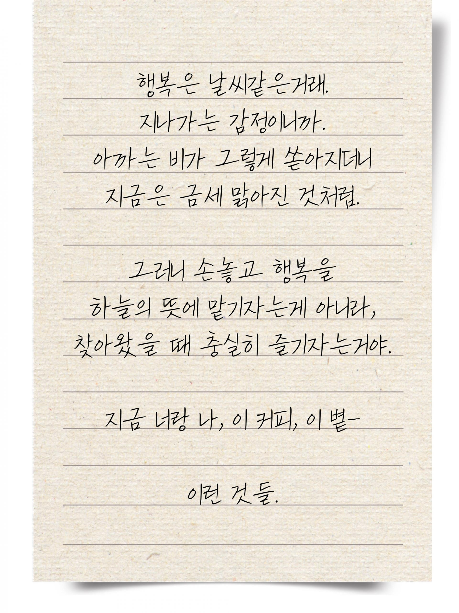 행복은 날씨같은거래. 지나가는 감정이니까.