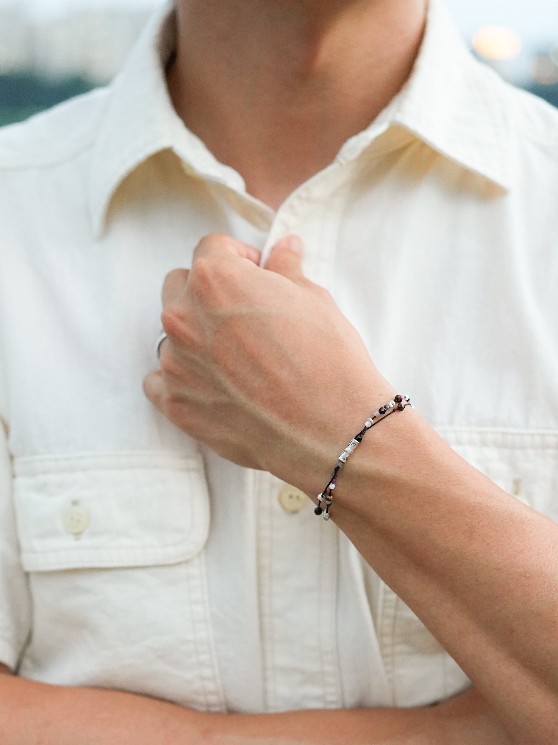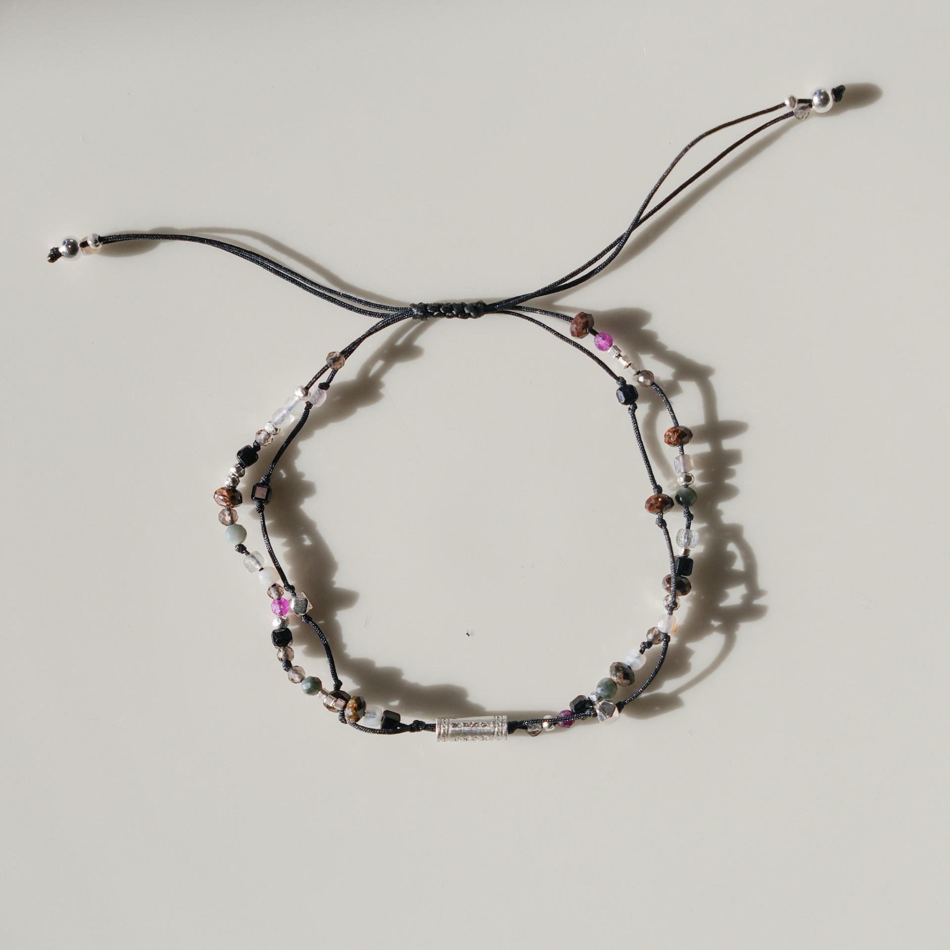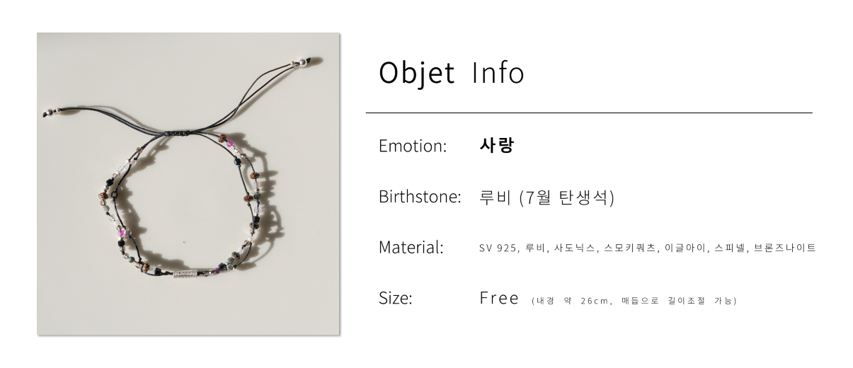 7월 탄생석 루비가 담긴 유니섹스 2줄 실팔찌입니다.