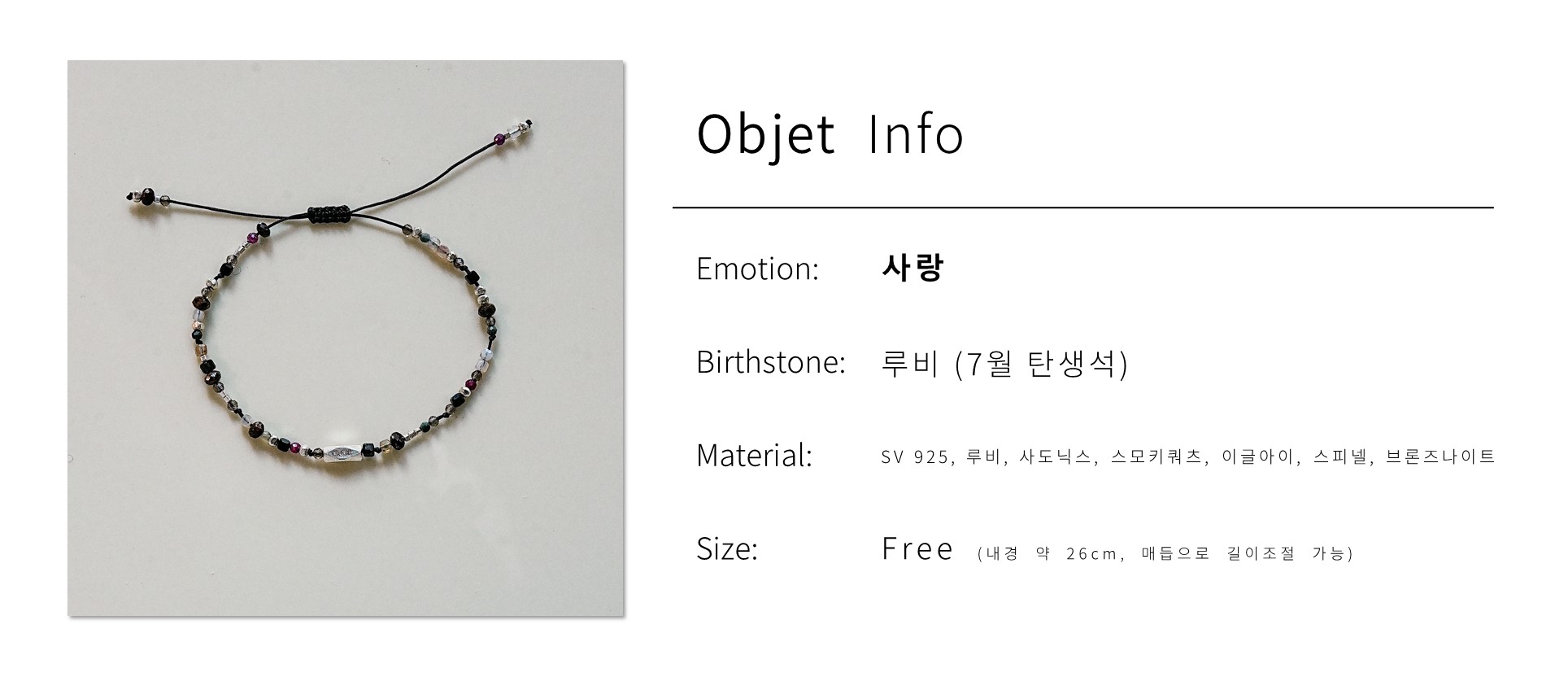 7월 탄생석 루비가 담긴 유니섹스 1줄 실팔찌입니다.