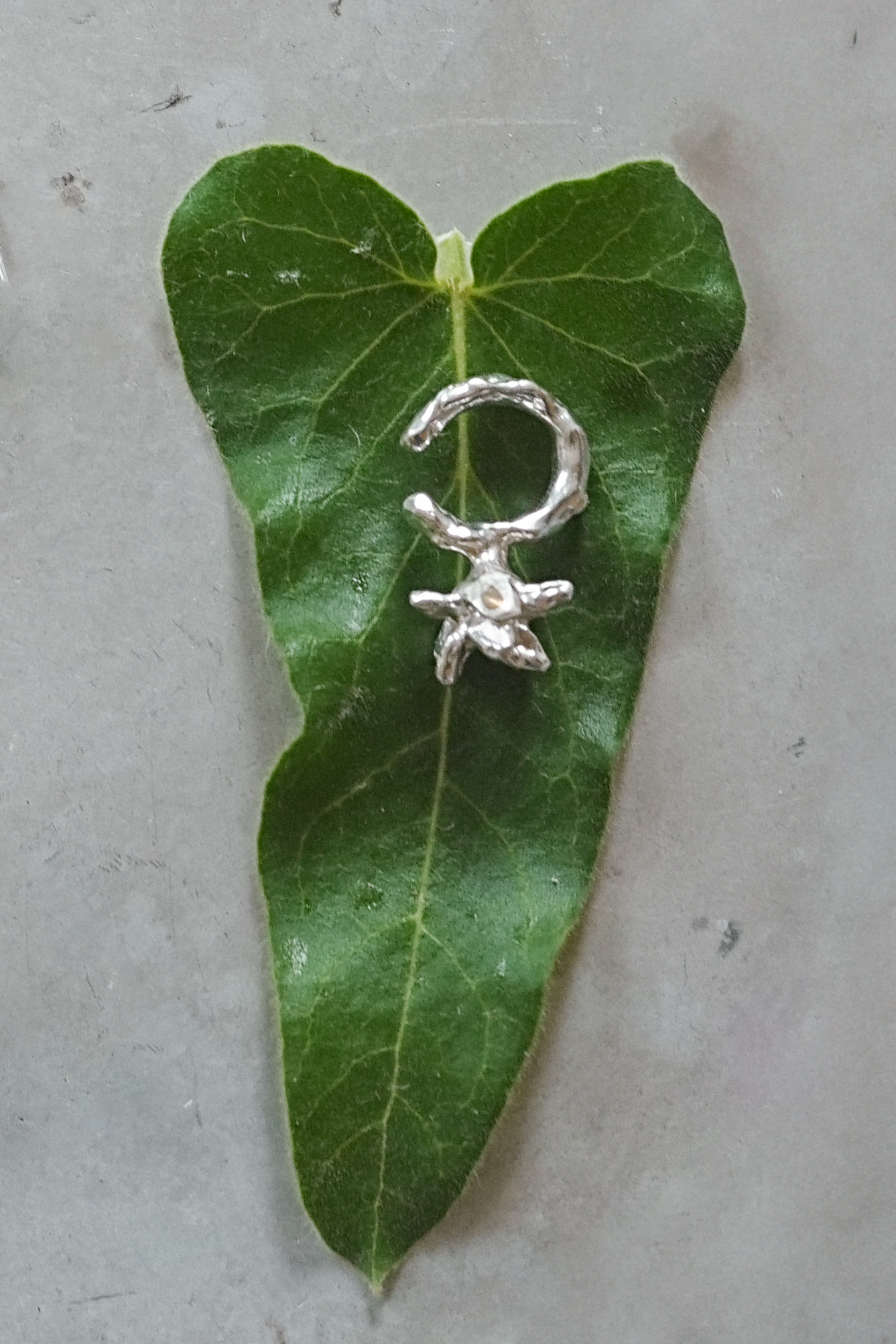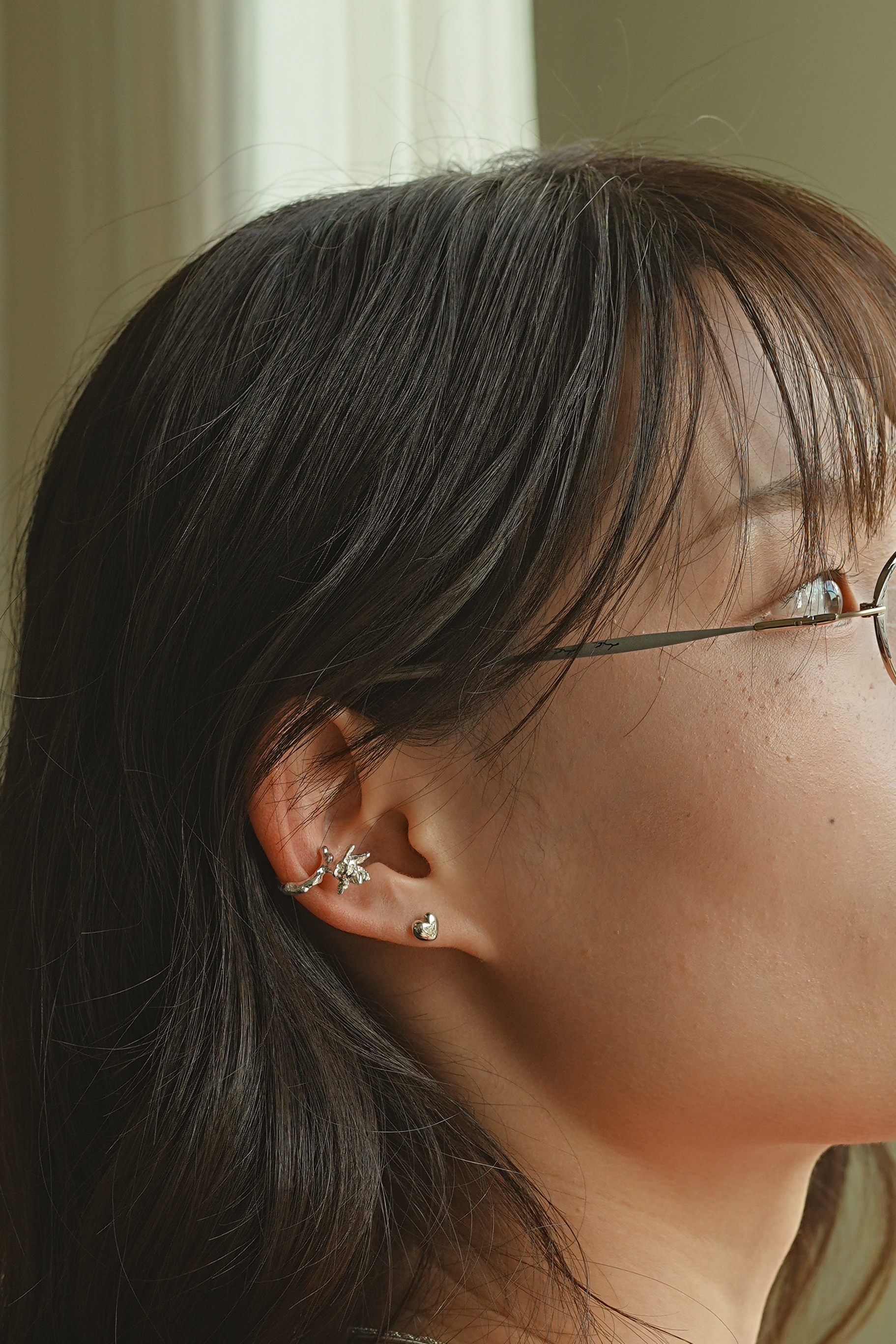 with Petal, silver earrings