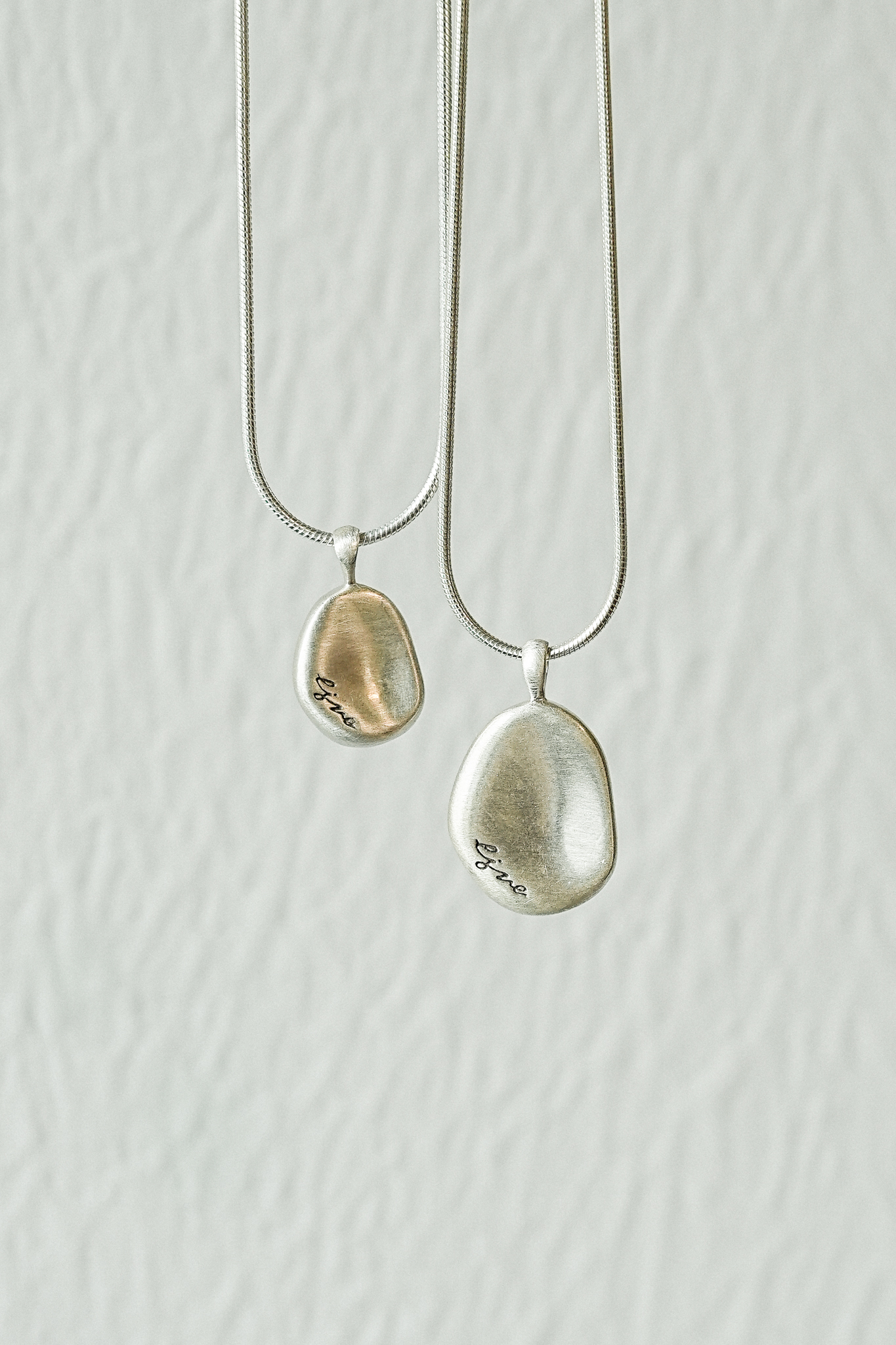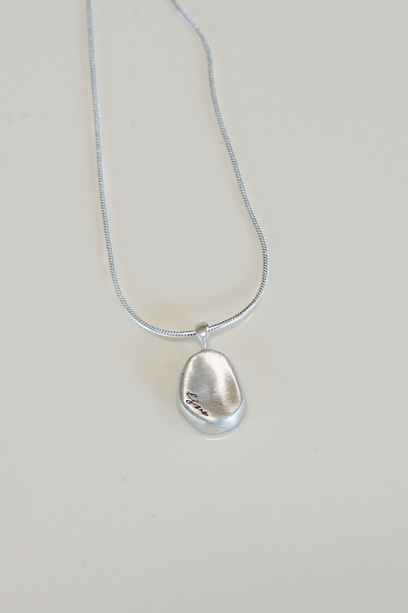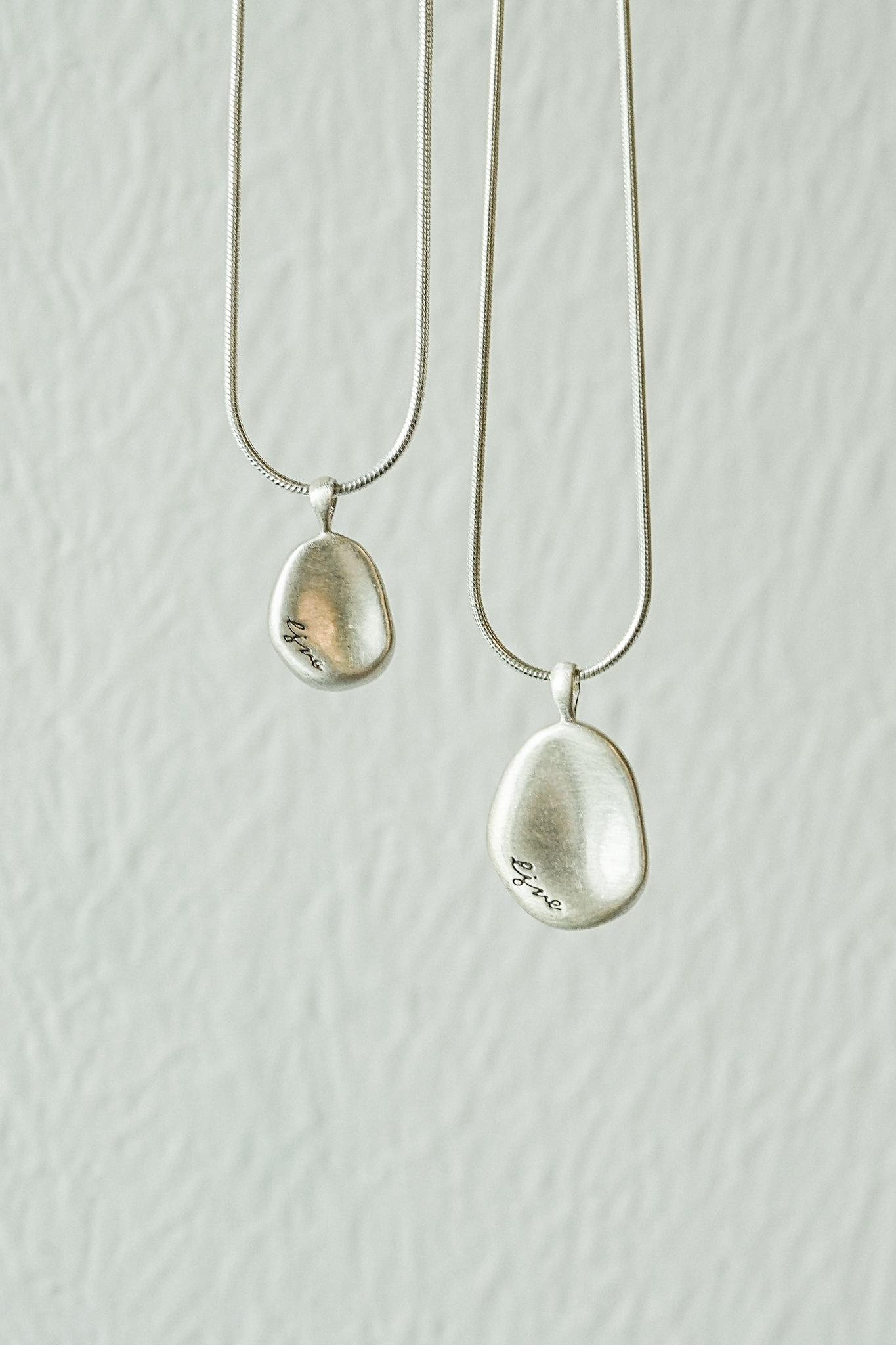 live + love 레터링이 새겨진 조약돌 펜던트입니다.