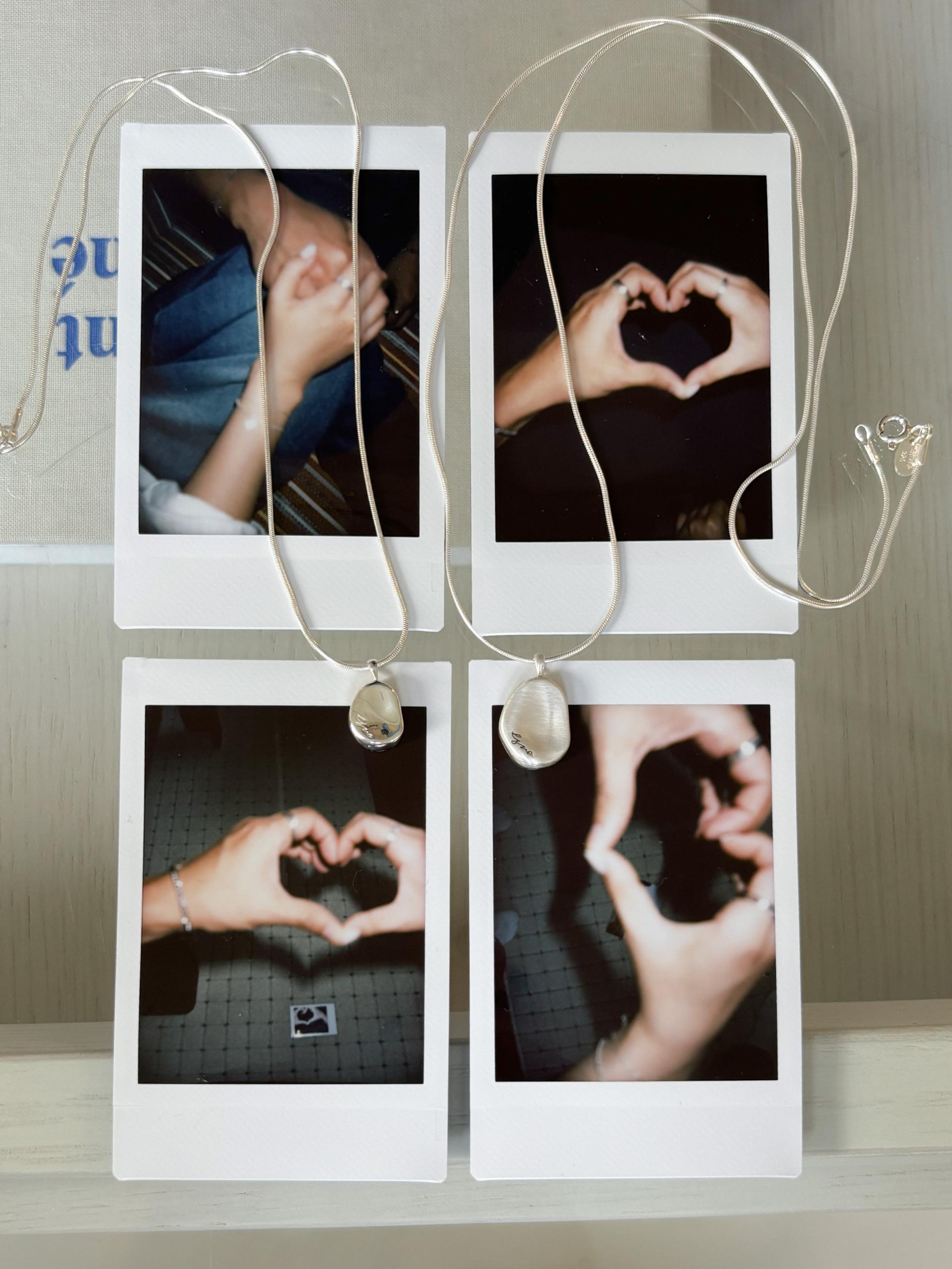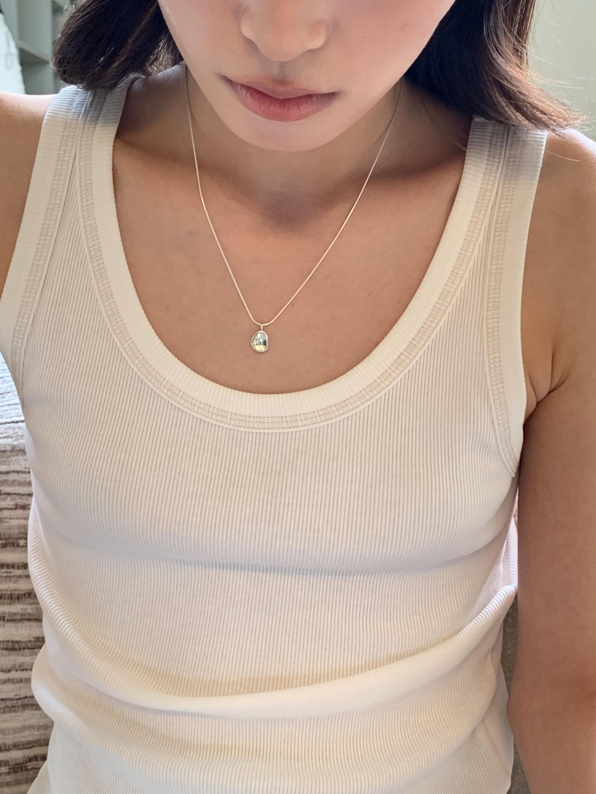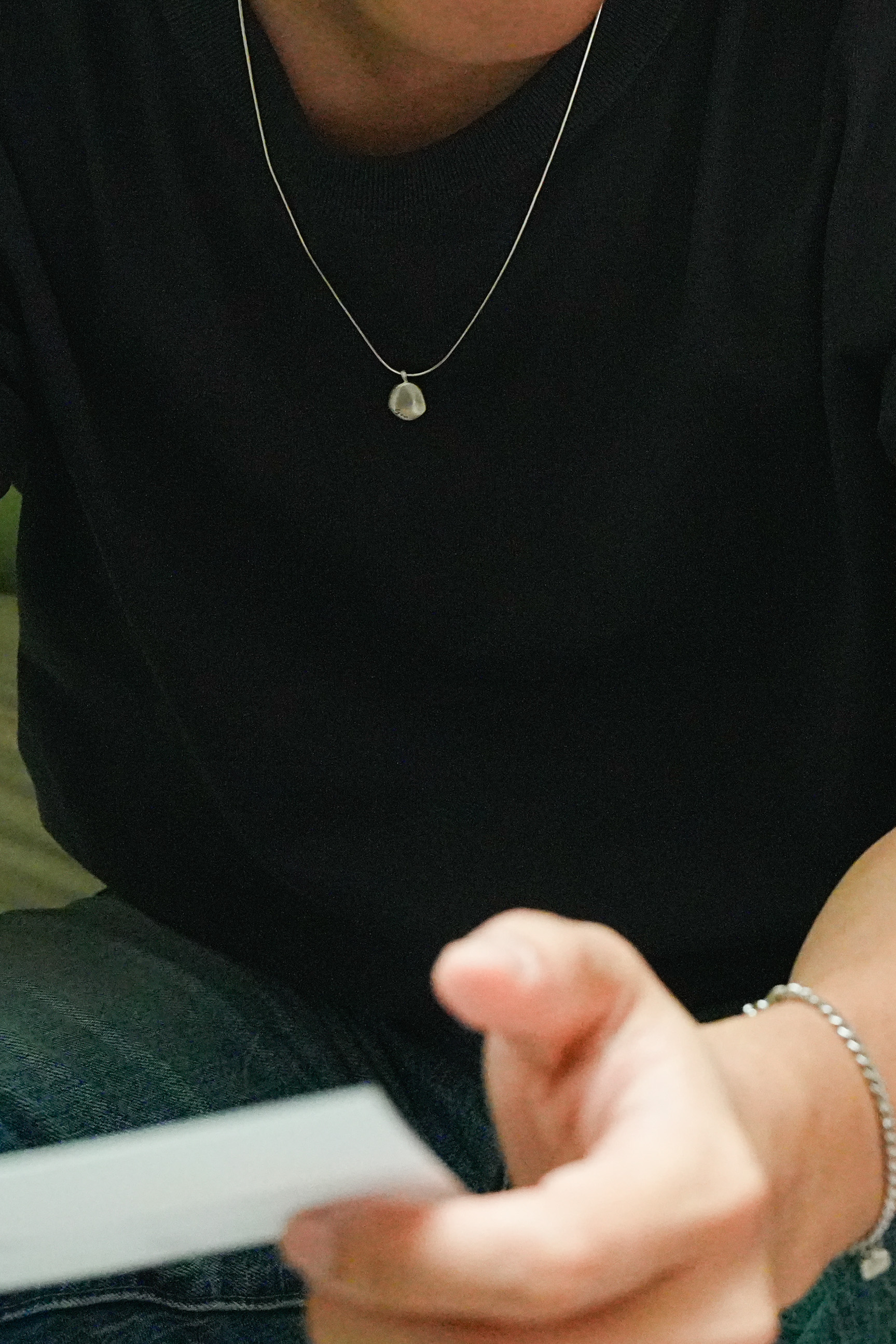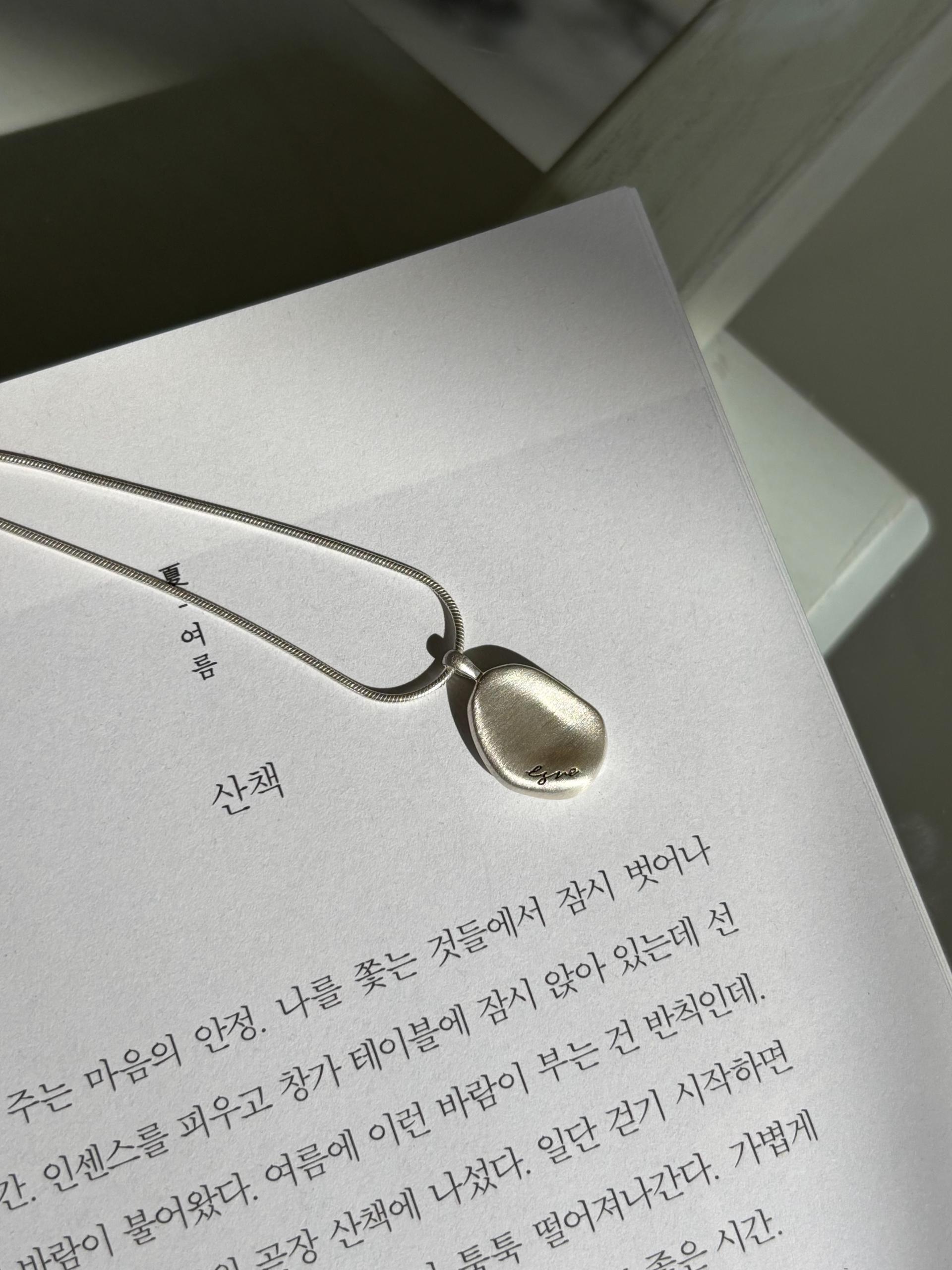 live + love 레터링이 새겨진 조약돌 펜던트입니다.