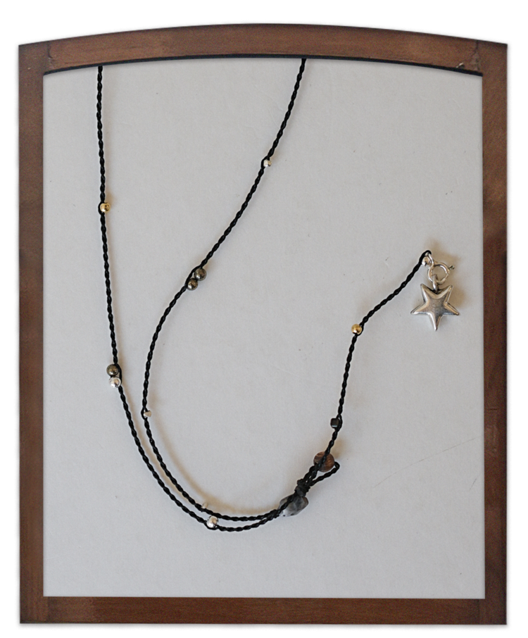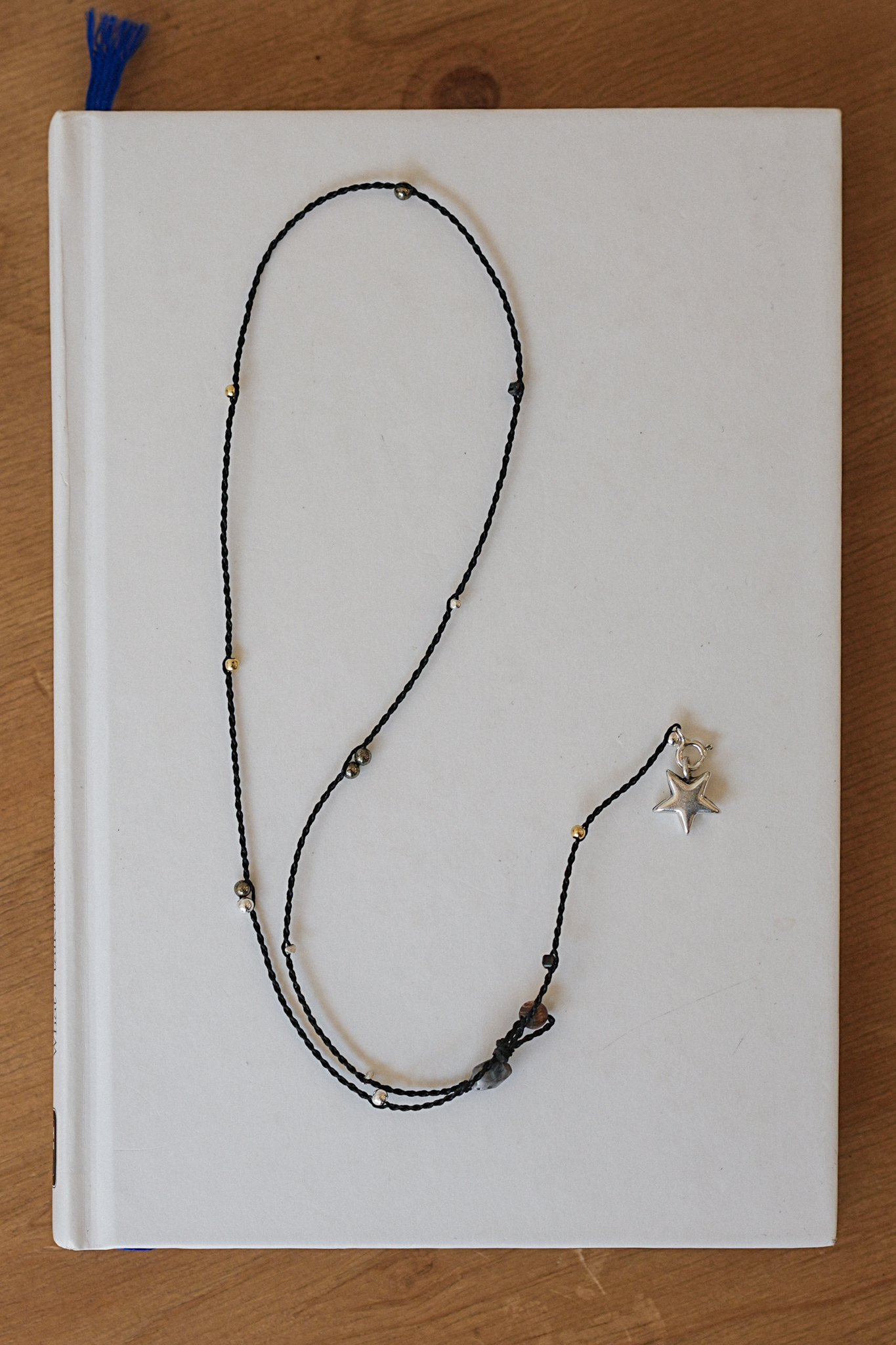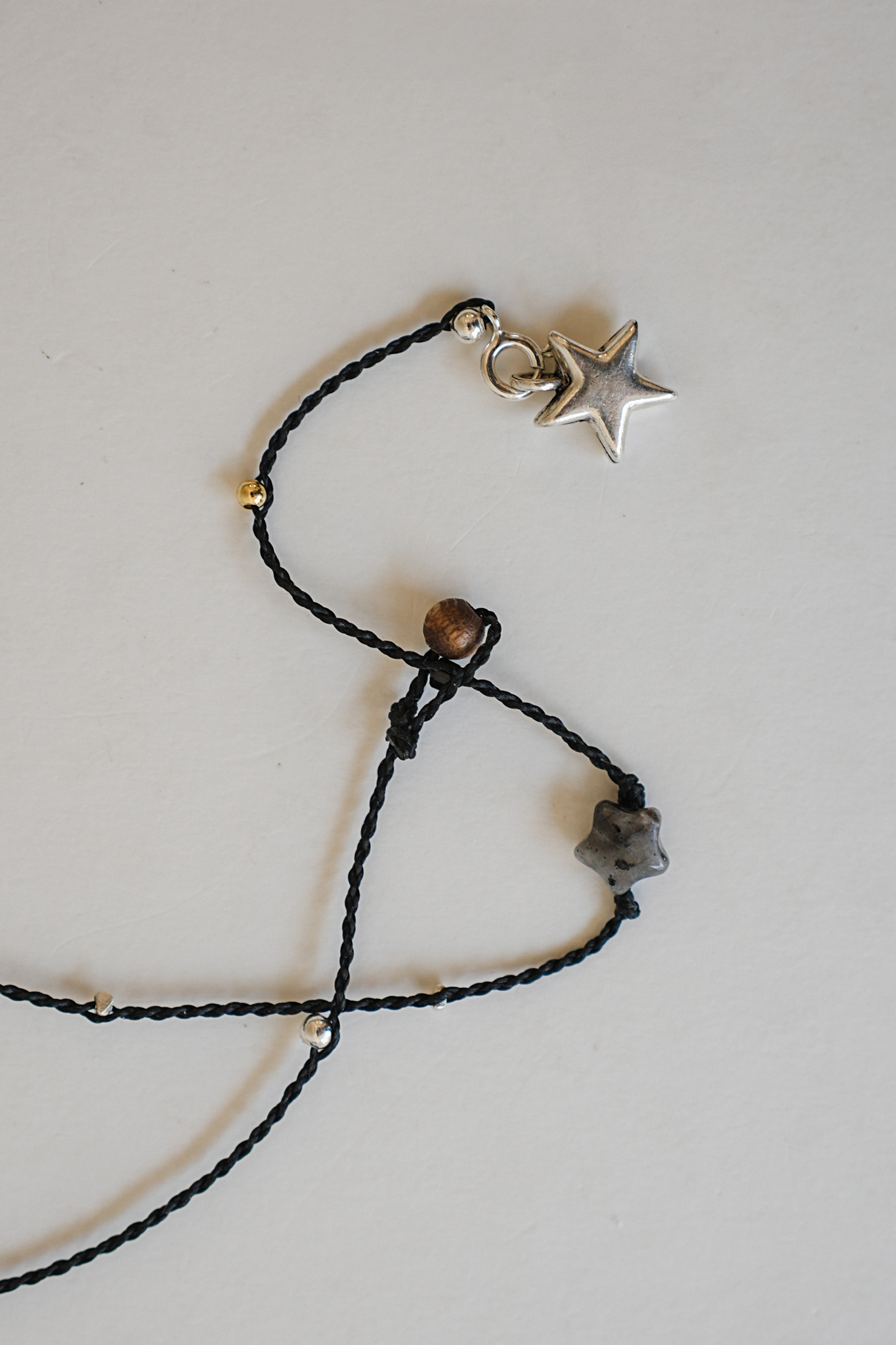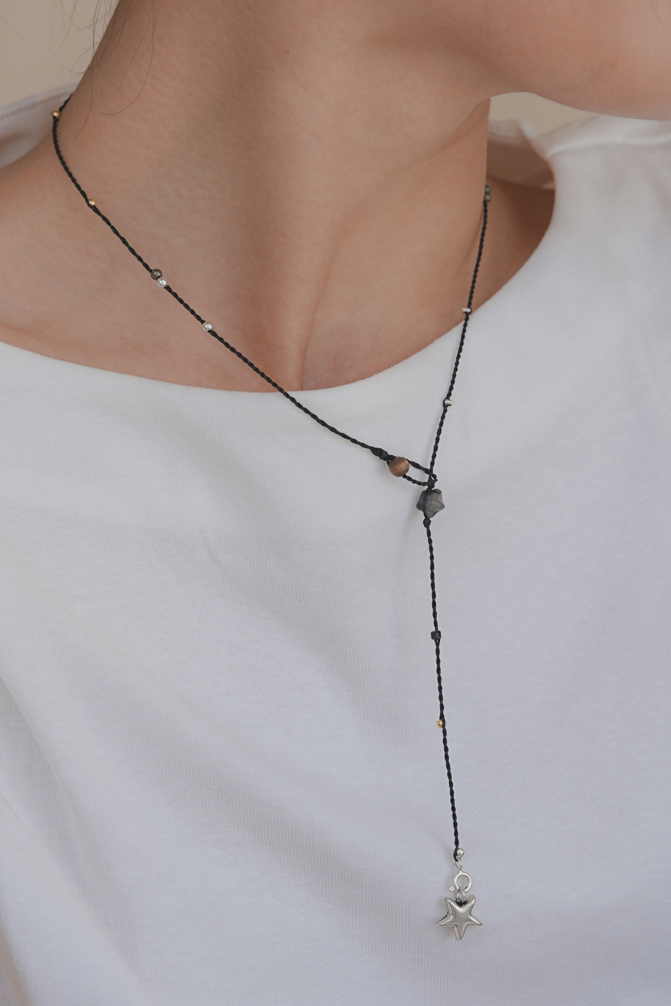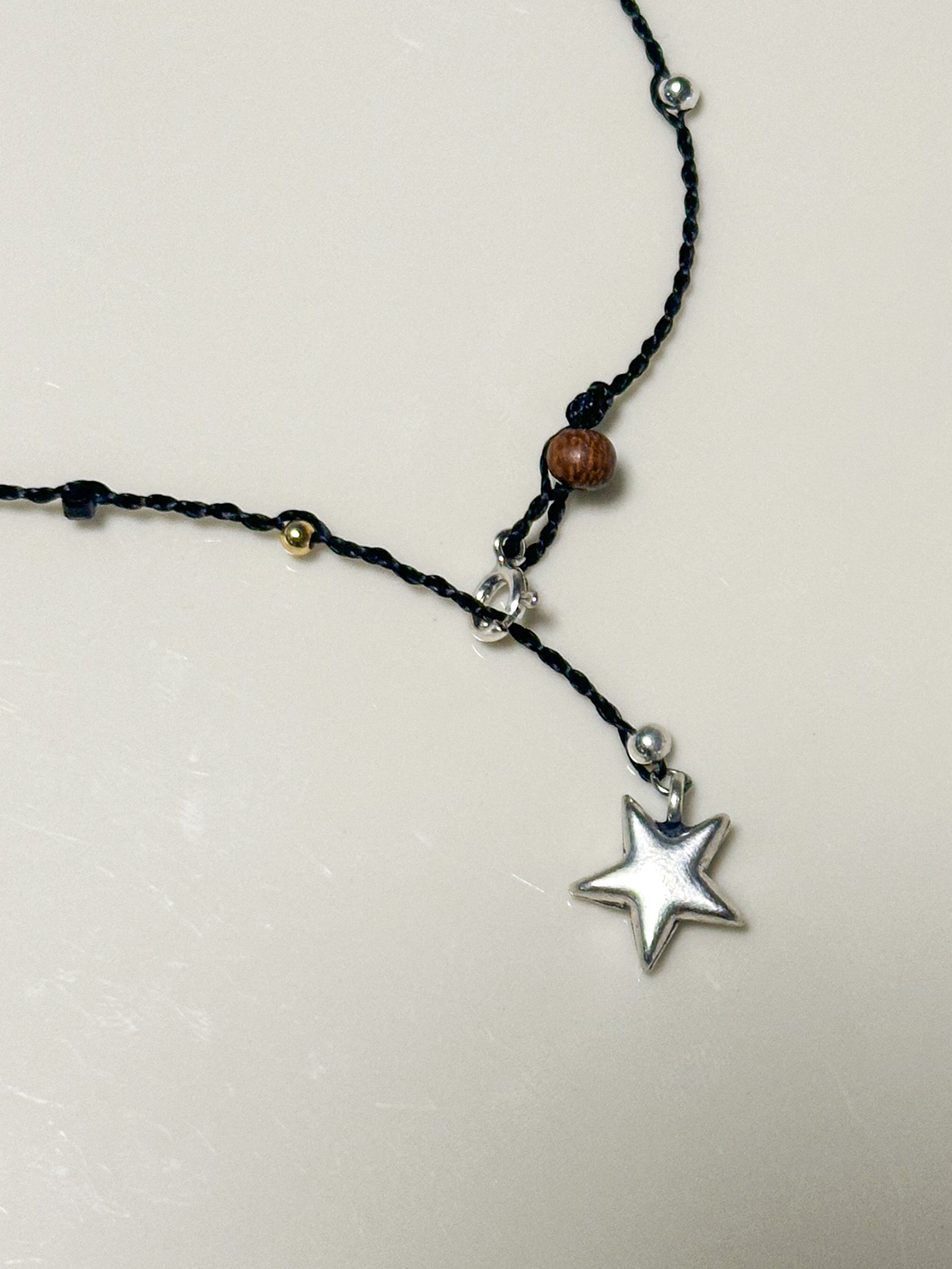 볼드한 별 펜던트와 우드,스피넬, 골드참을 엮어