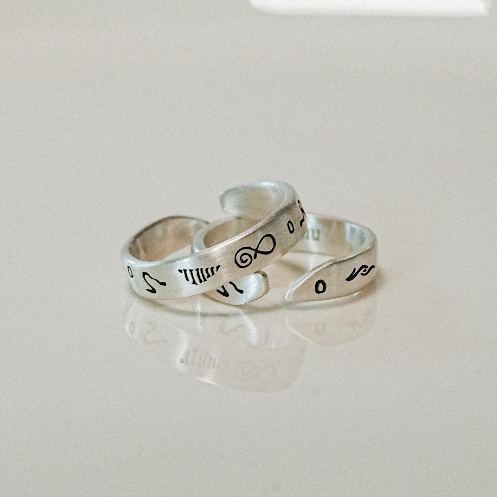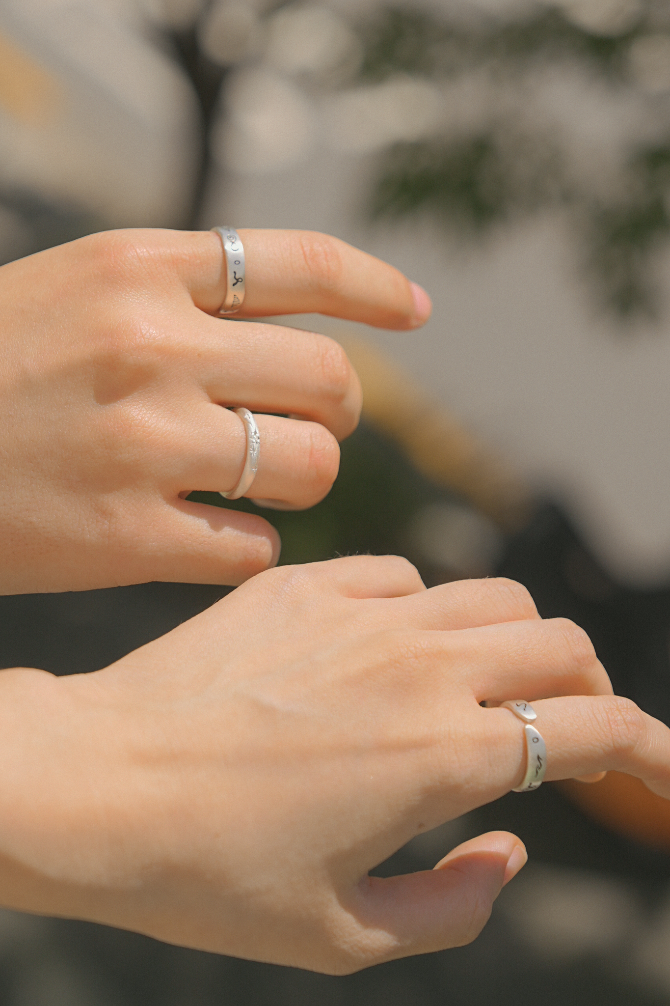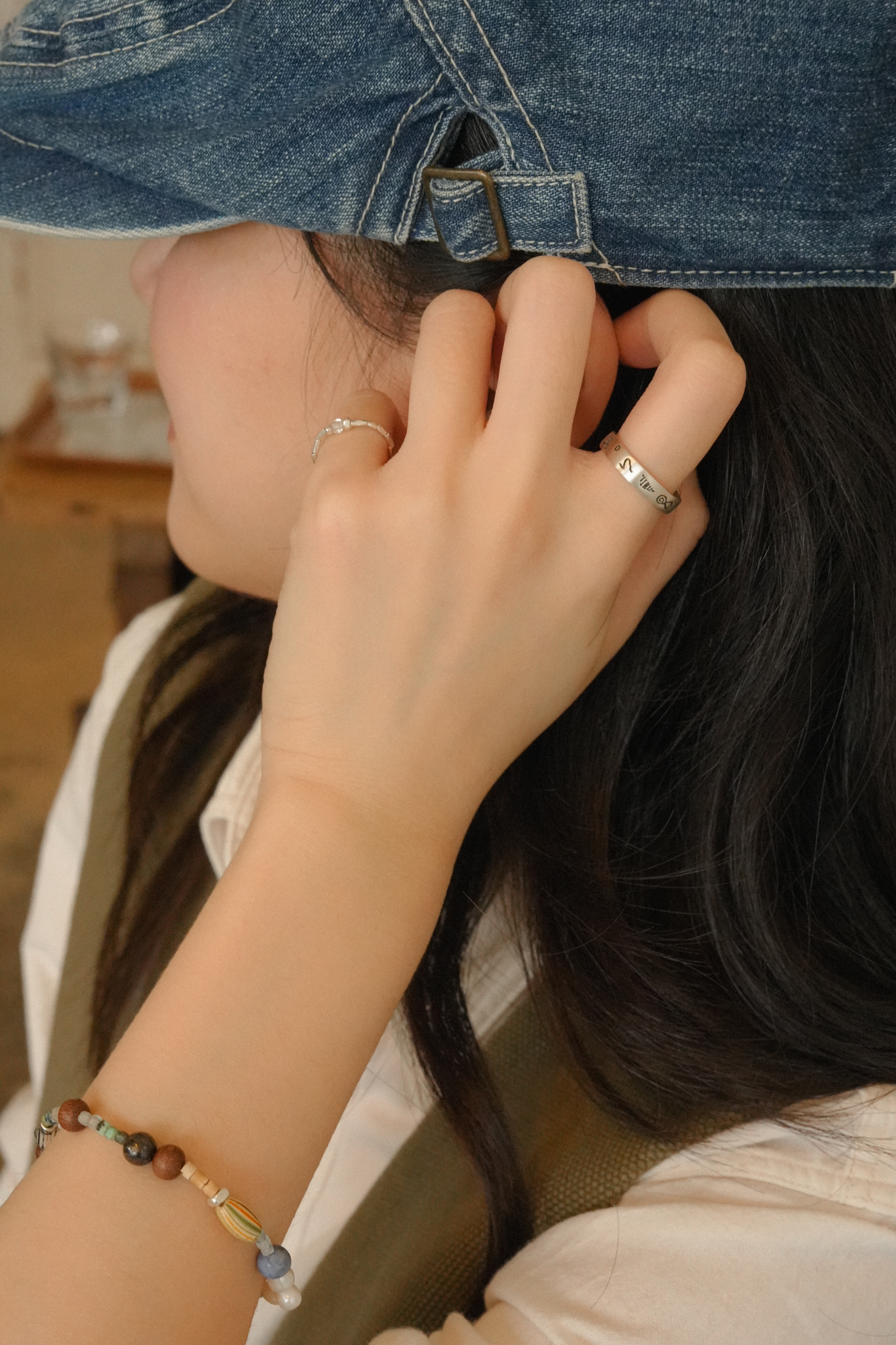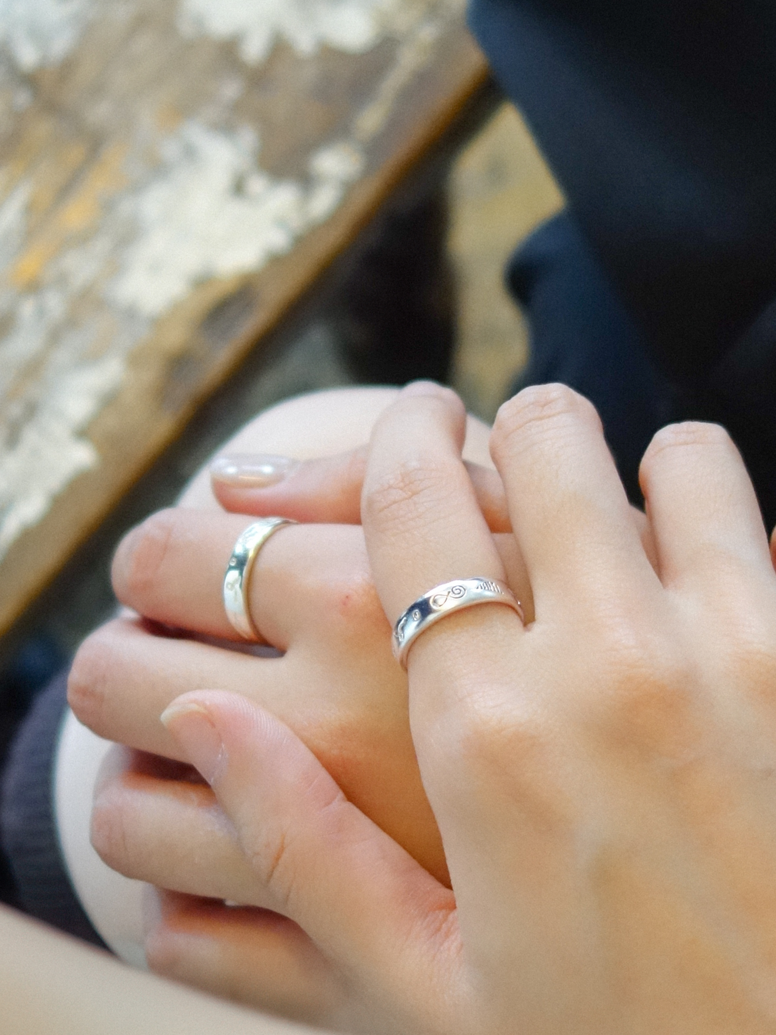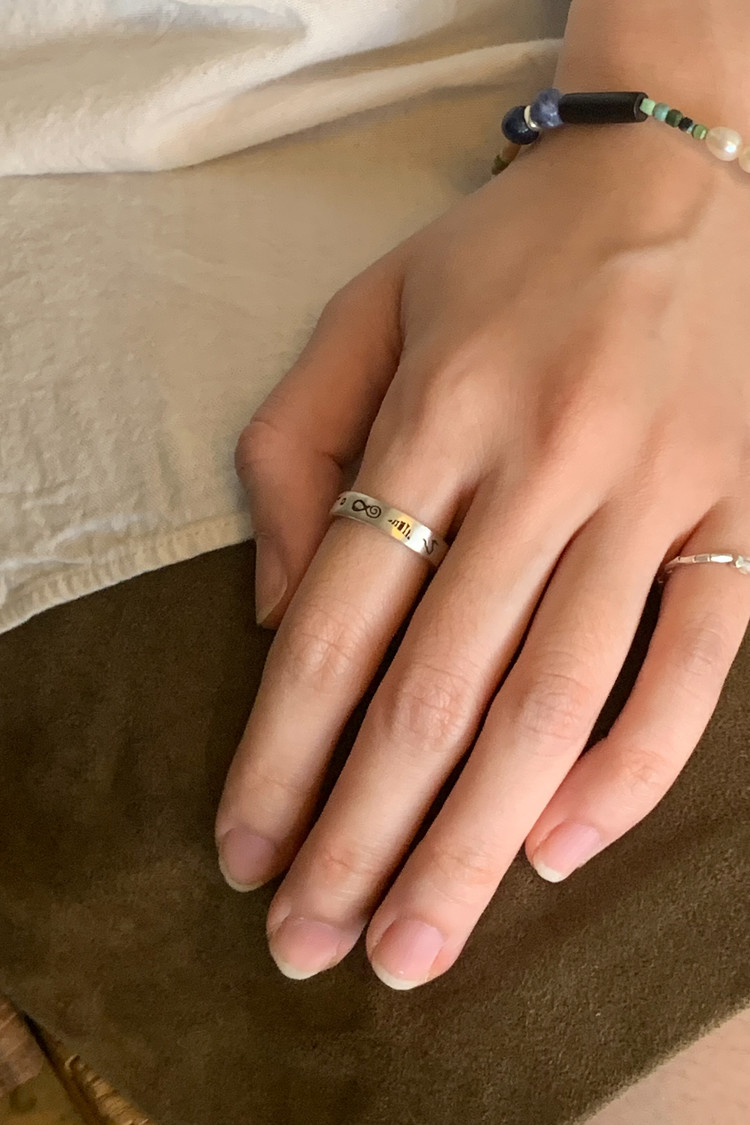 호흡의 형상을 새겨넣은 실버 반지입니다.