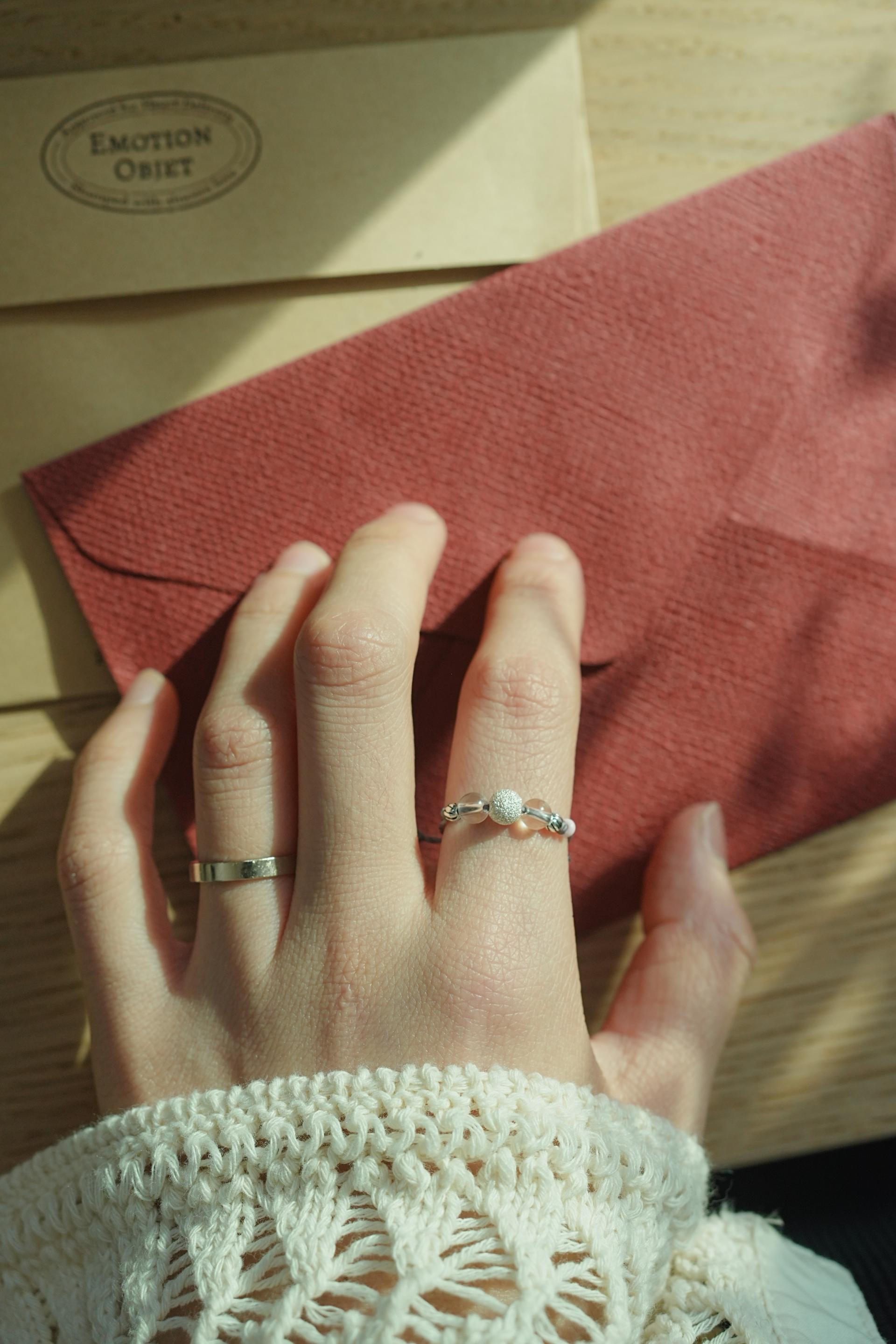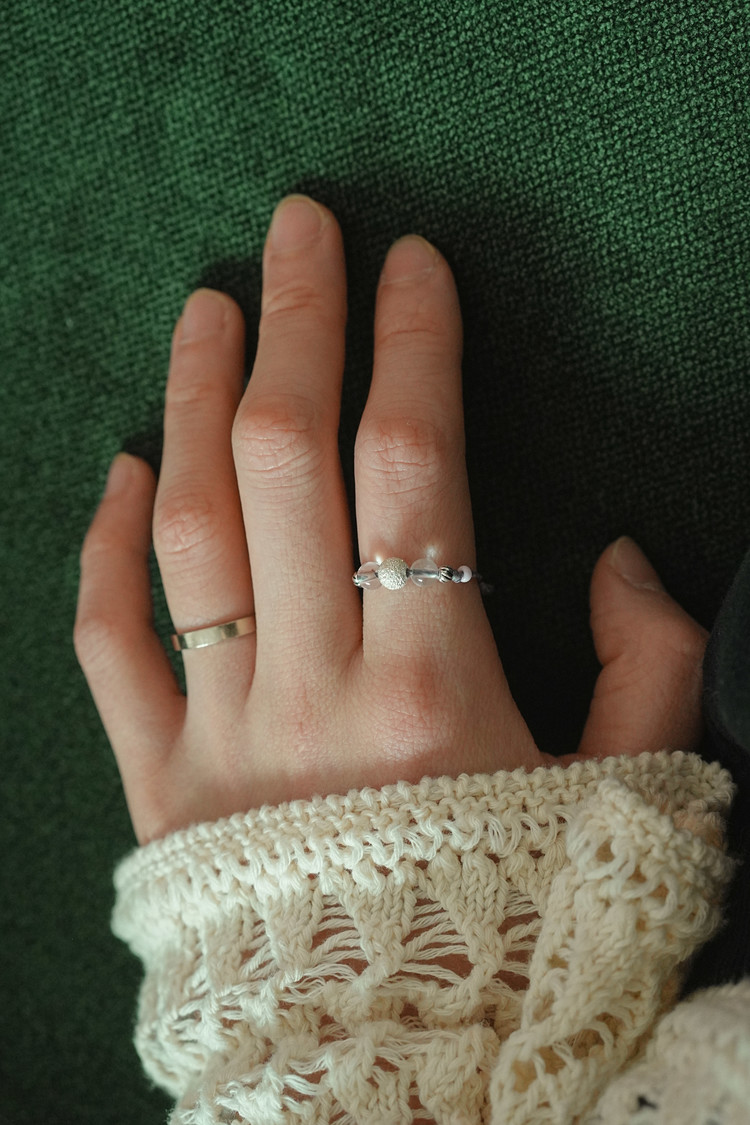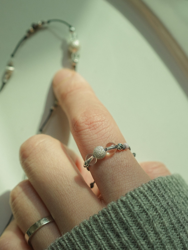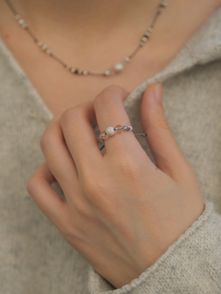 실과 원석, 실버로 엮은 실반지입니다.