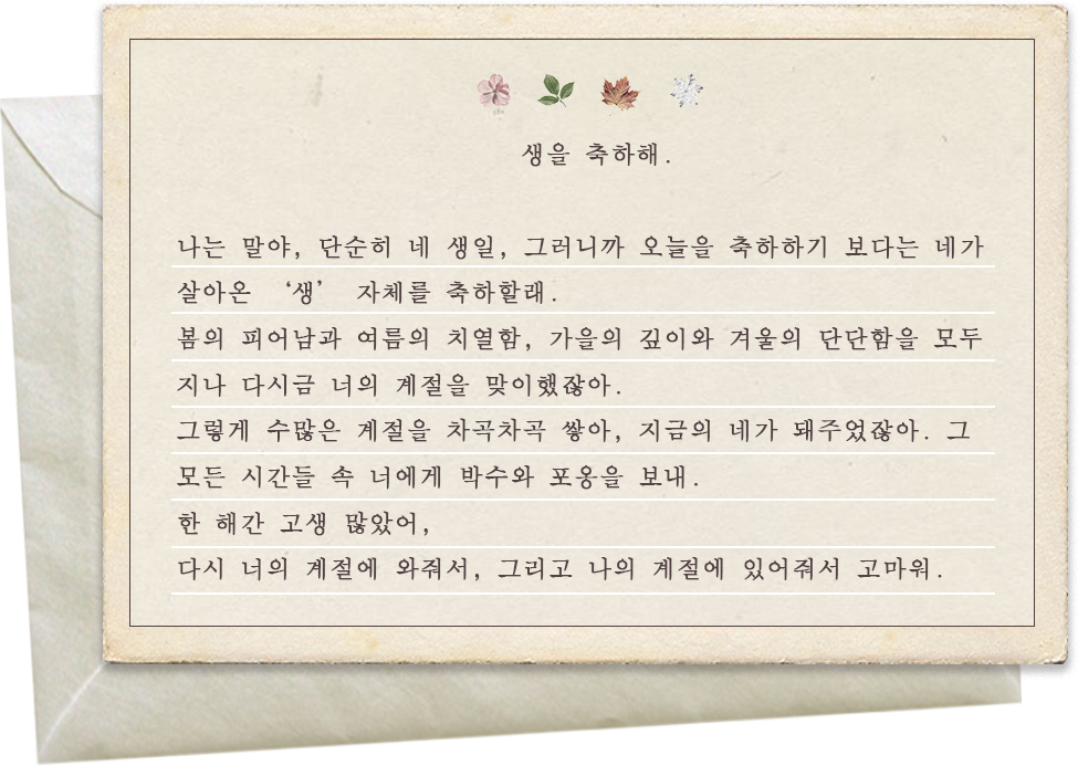 생일을 너머, '생'을 축하하는 마음을 담아.