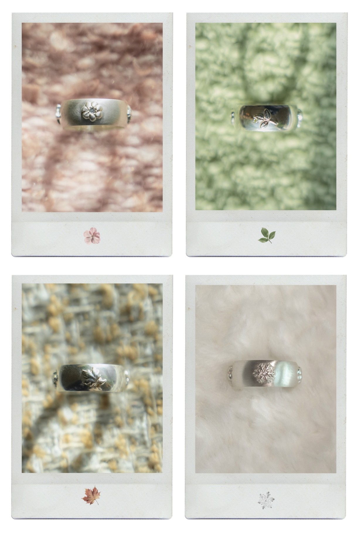 꽃, 나뭇잎, 단풍잎, 눈꽃이 담겨 있습니다.