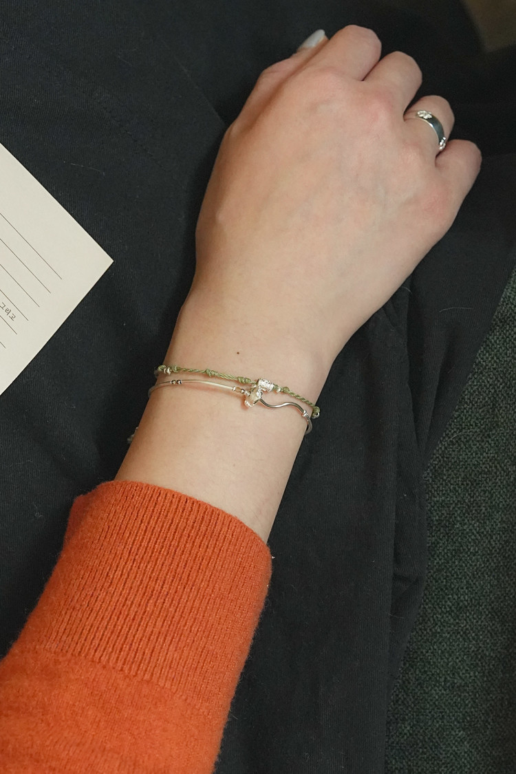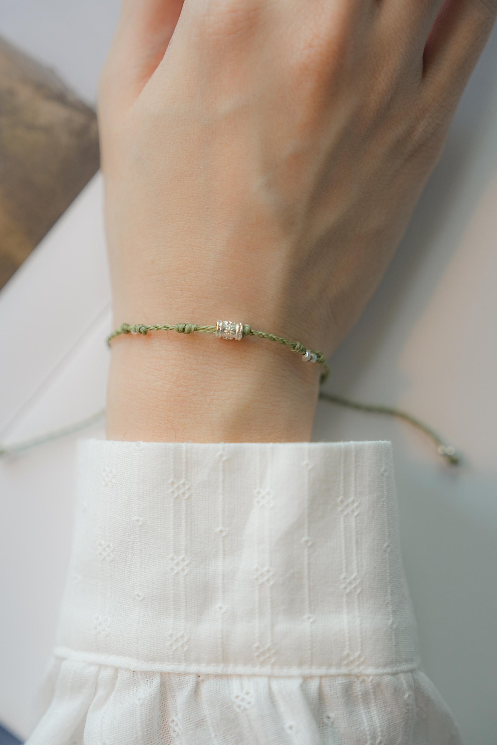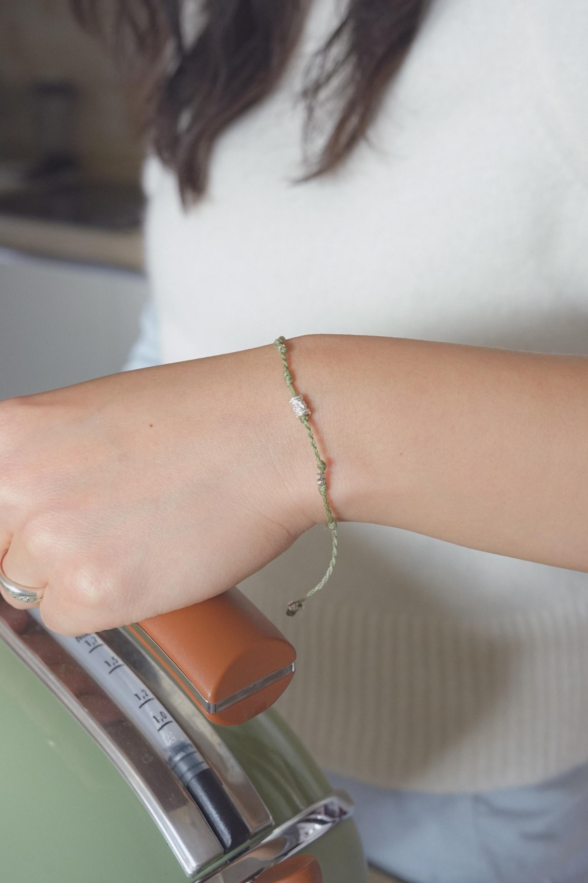 연둣빛 매듭과 사계가 담긴 실버 참이 싱그럽게 어우러져요.