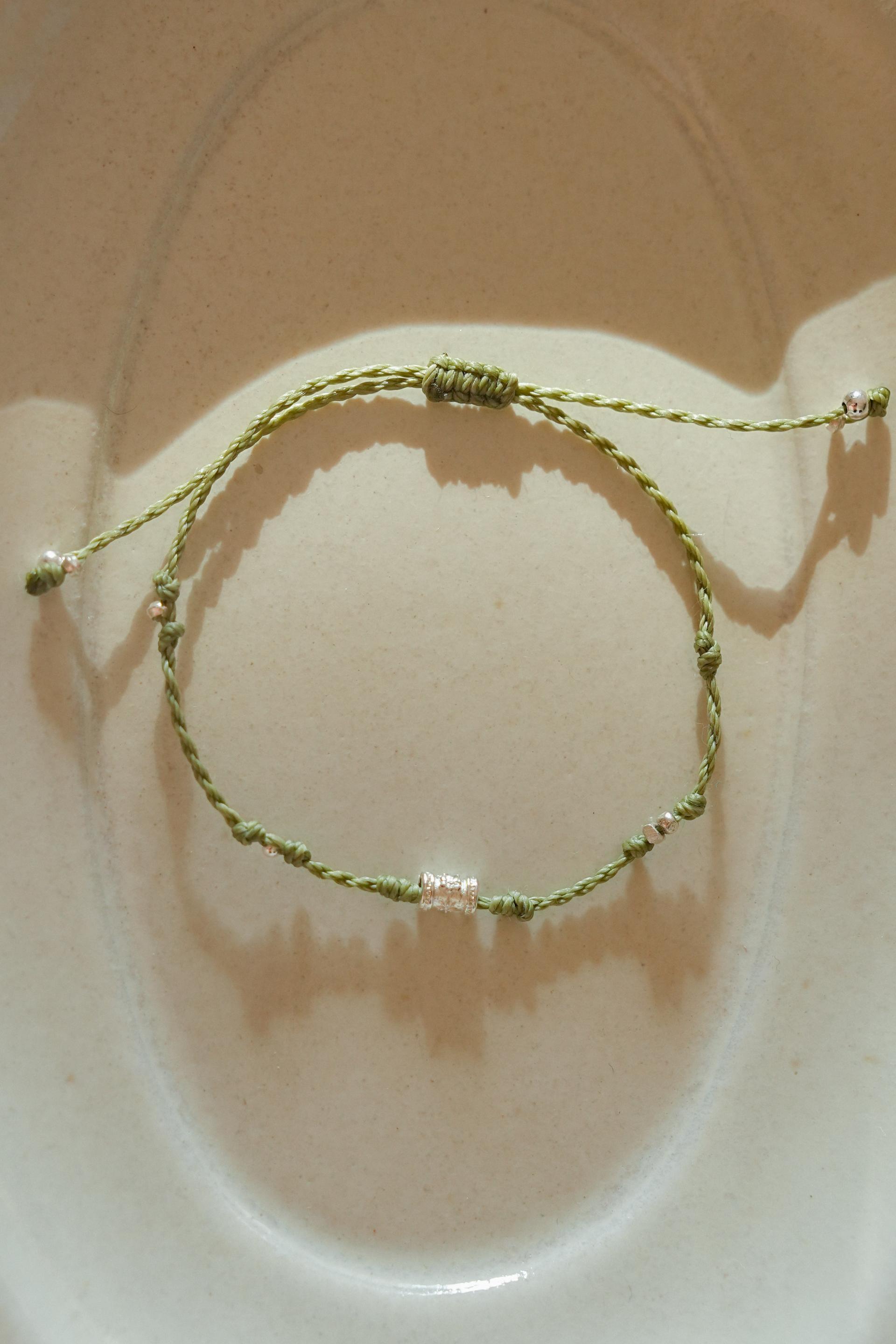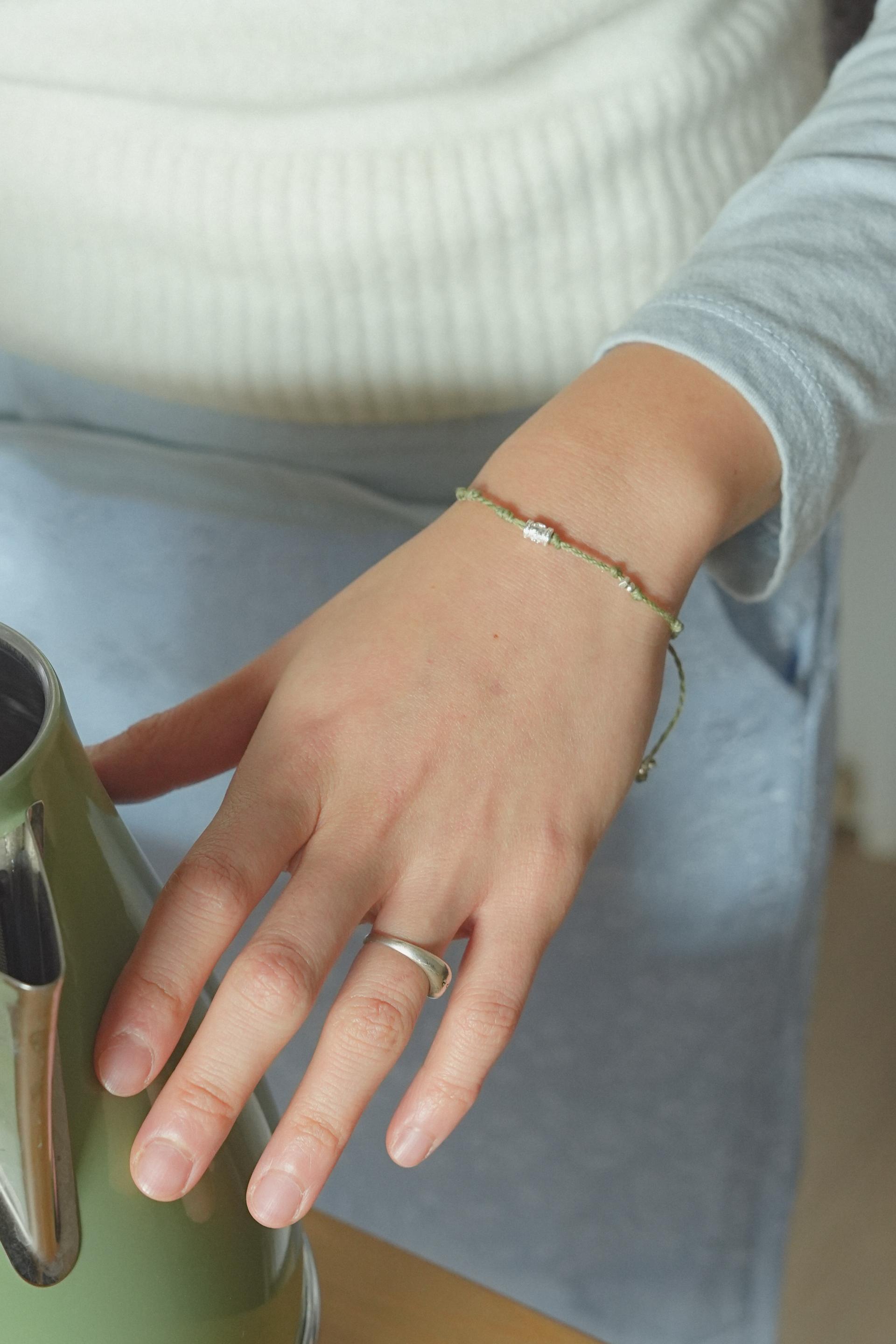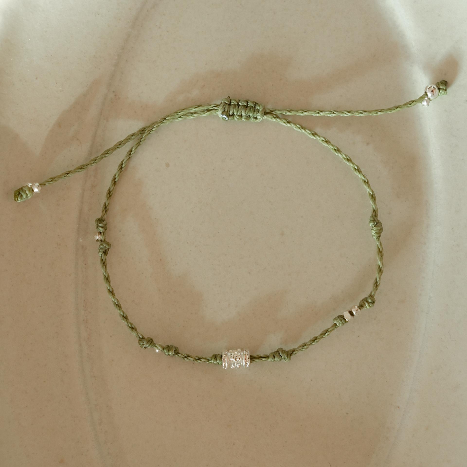 연둣빛 매듭과 사계가 담긴 실버 참이 싱그럽게 어우러져요.